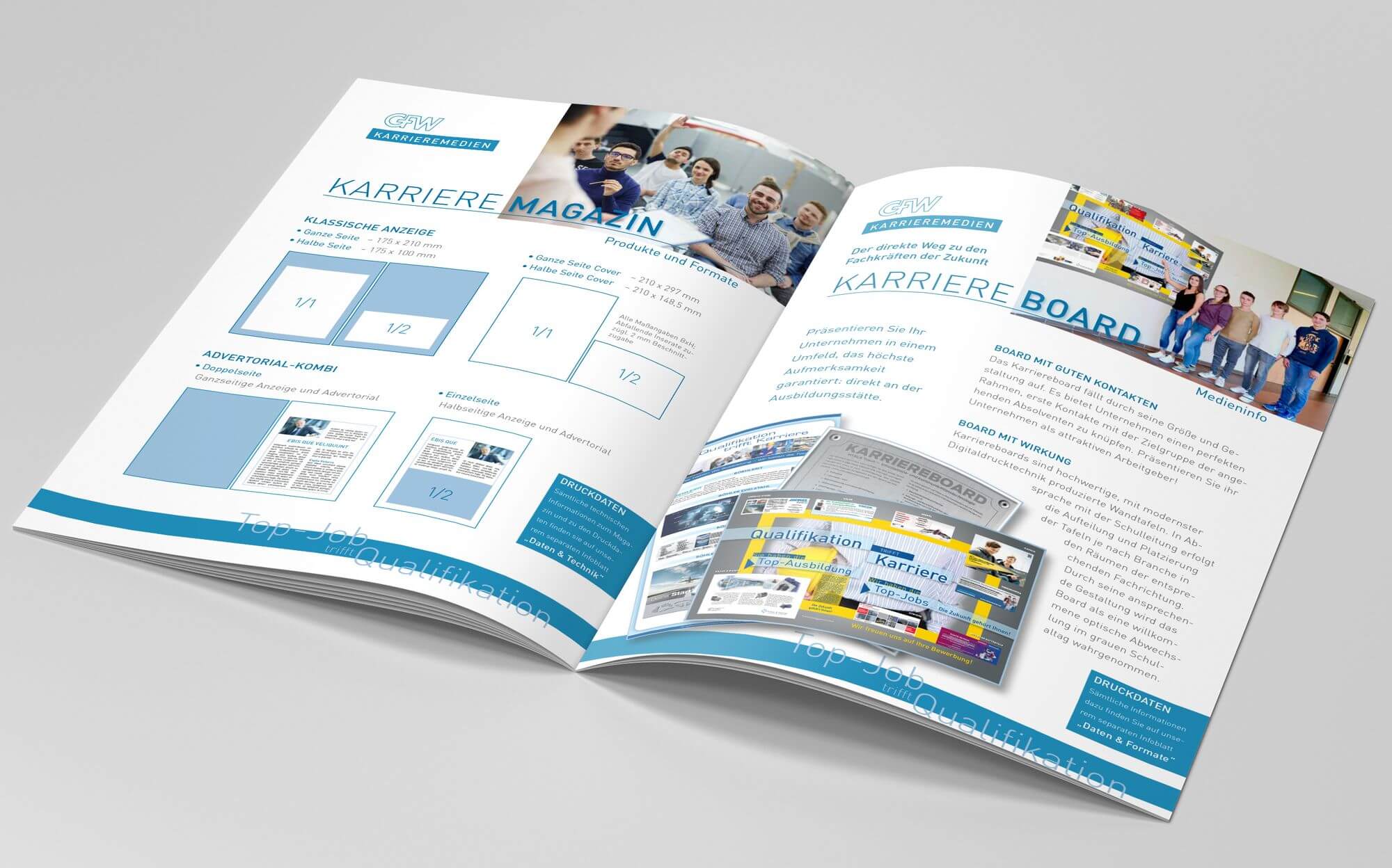 Das Karrieremagazin ist als Fachmedium für die Jobsuche konzipiert und dient als Branchenüberblick und zur Orientierung bei der Auswahl des künftigen Arbeitgebers. Das zielgruppengerecht gestaltete und hochwertig produzierte Print-Magazin wird allen Studenten durch die Schulleitung persönlich übergeben und trifft so zu 100% die Zielgruppe der angehenden Fachkräfte.